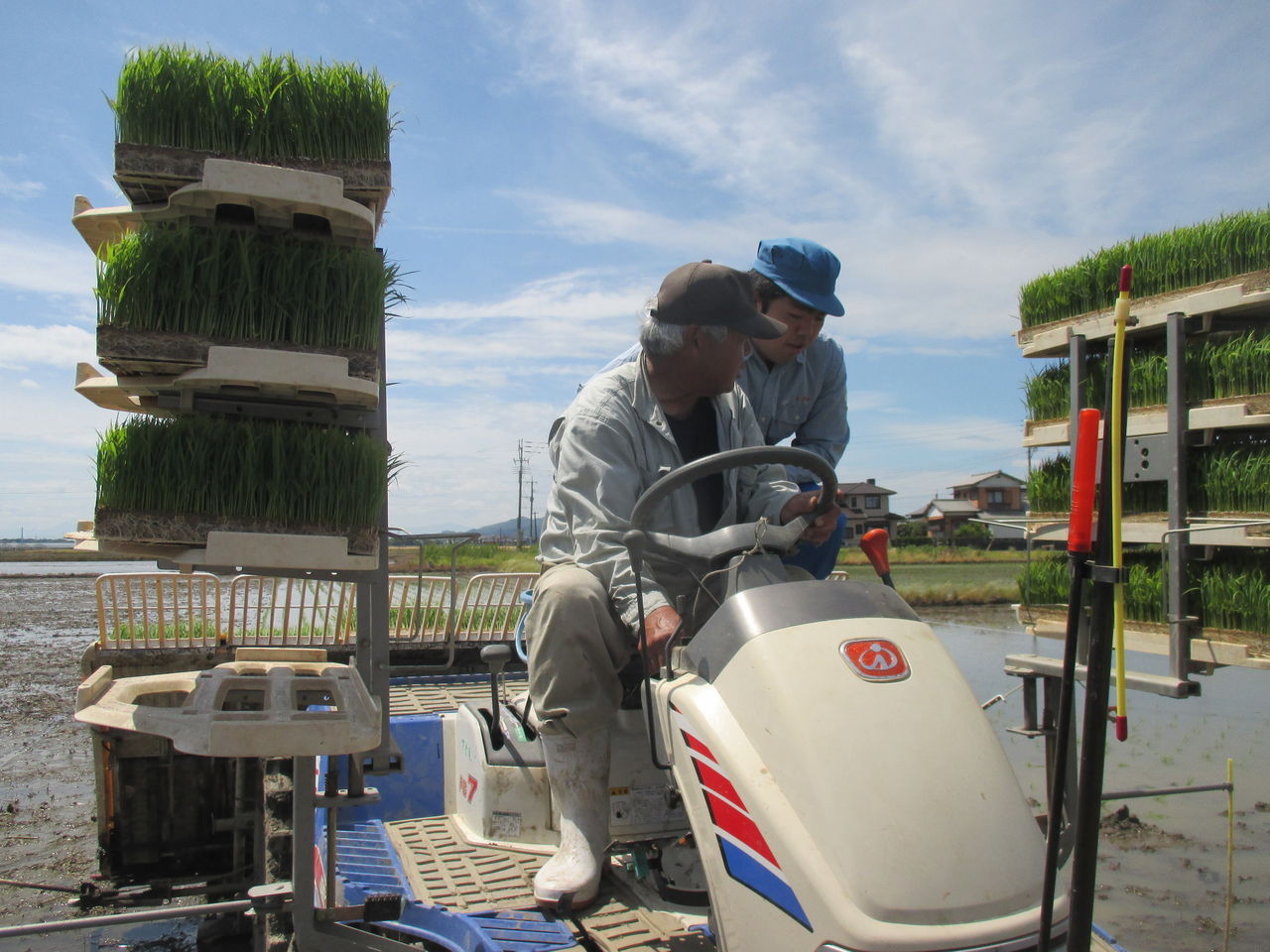 まずは、毎年恒例の田植え機への乗車。