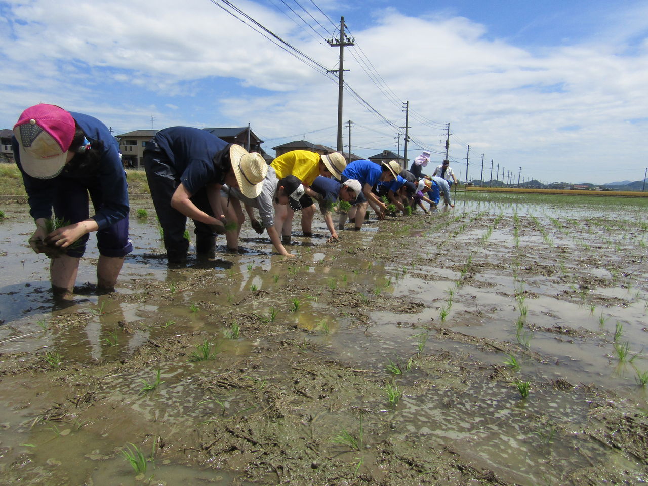 一列に並んで、となりの人に声をかけながら苗を植えていきます