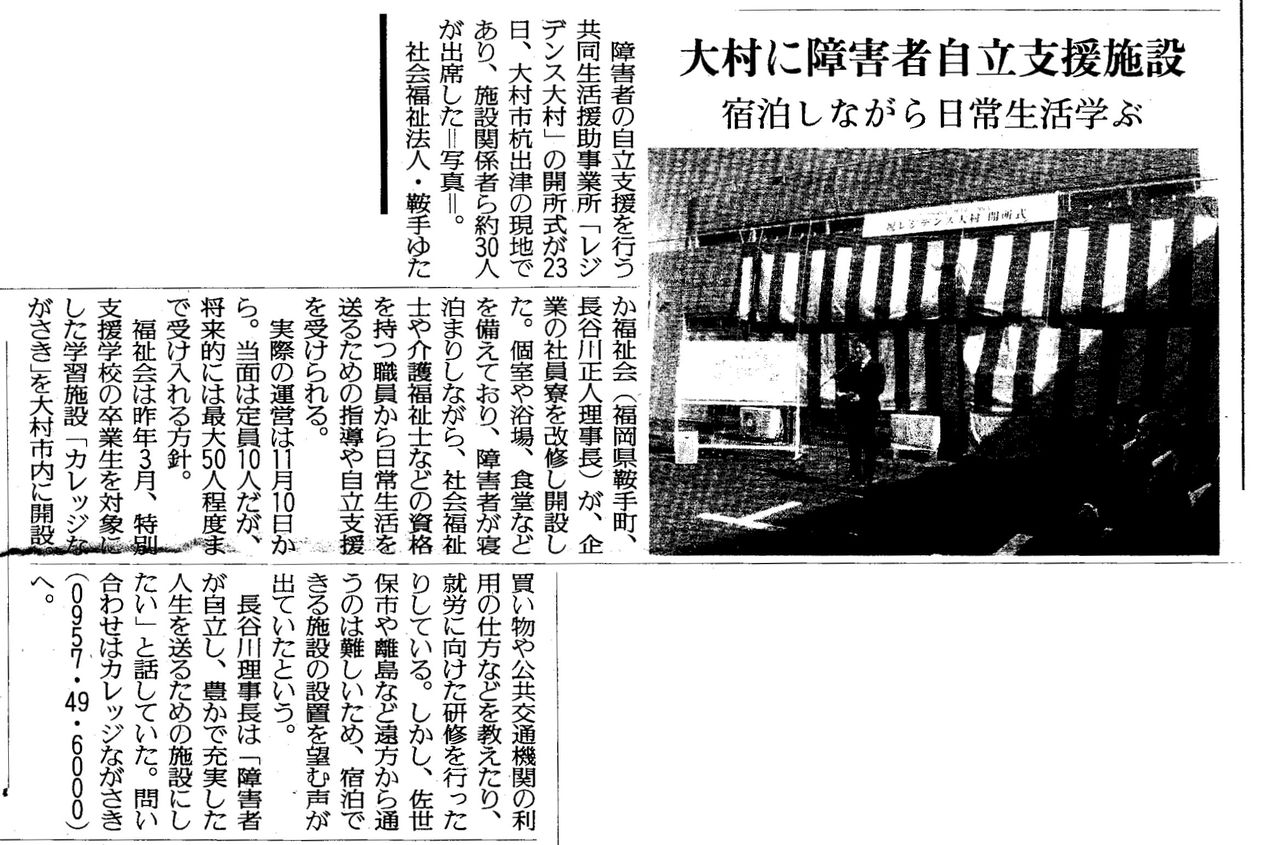 去る10月23日(木)には、「レジデンス大村」の開所式が行われ、長崎県障害福祉課長や大村市副市長並びに障害福祉課長などより、ご祝辞をいただきました。また、県内の特別支援学校の先生方もお祝いに駆けつけて下さいました。