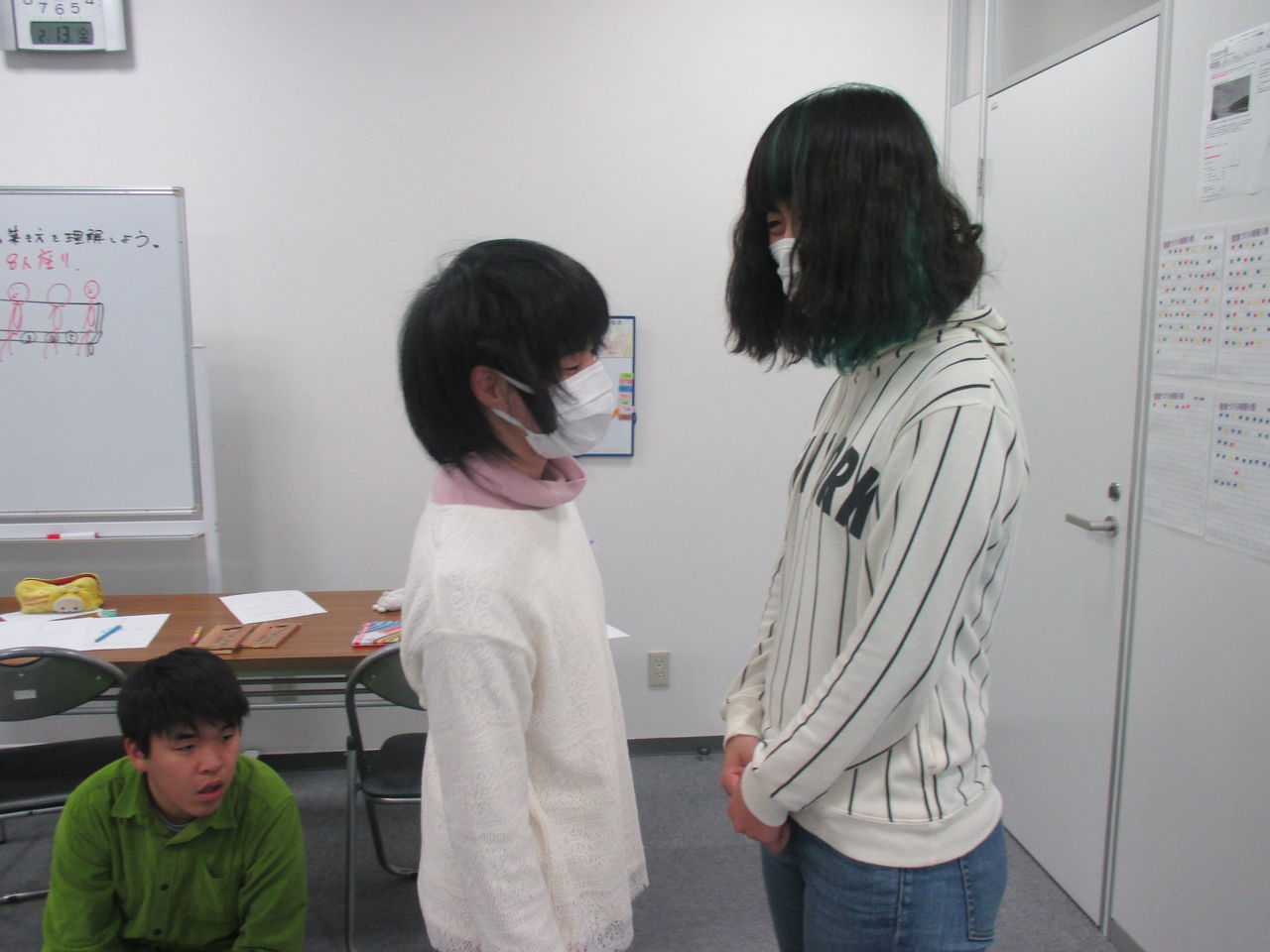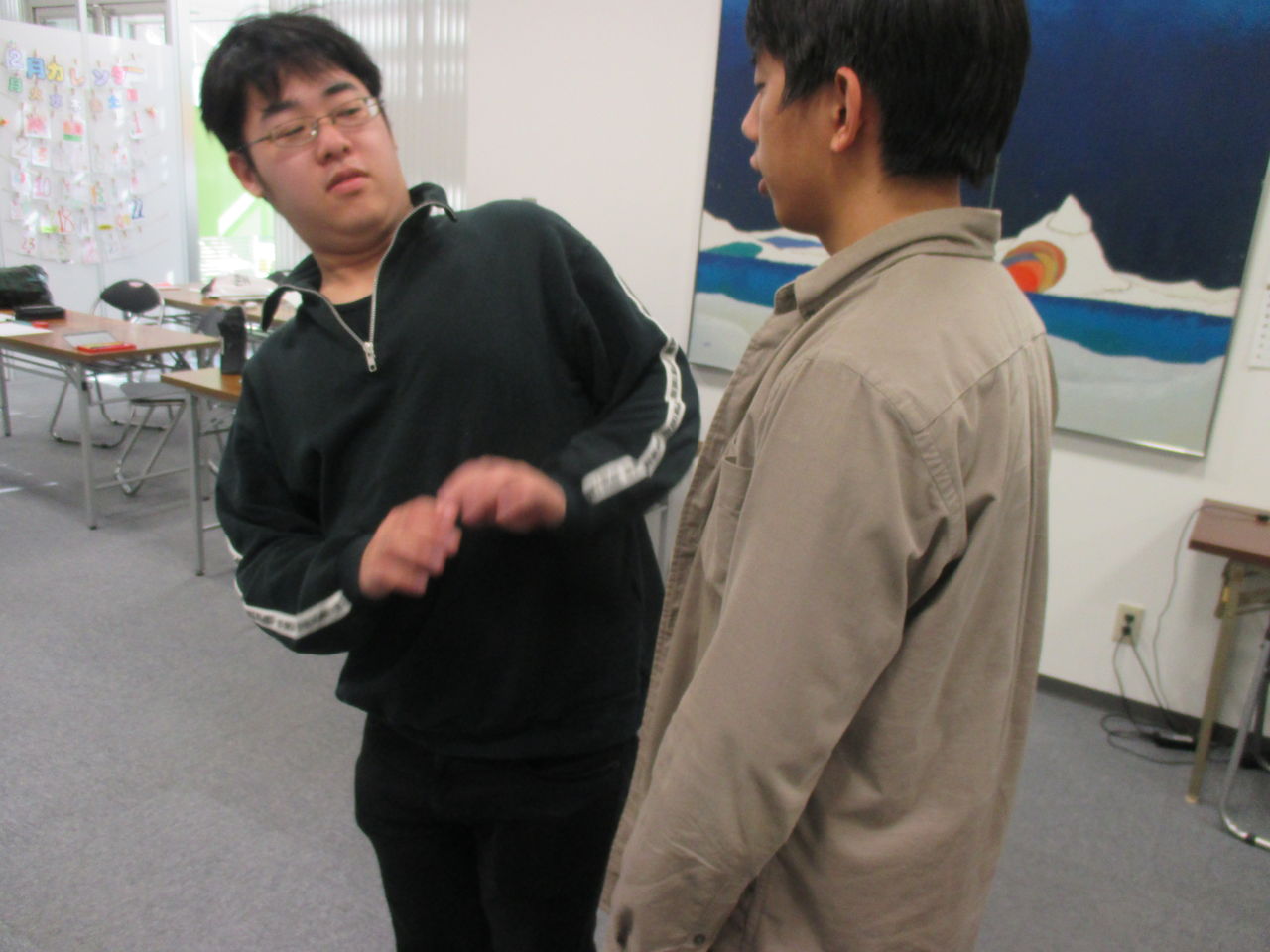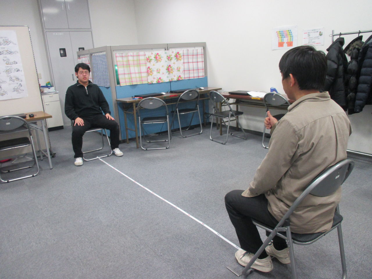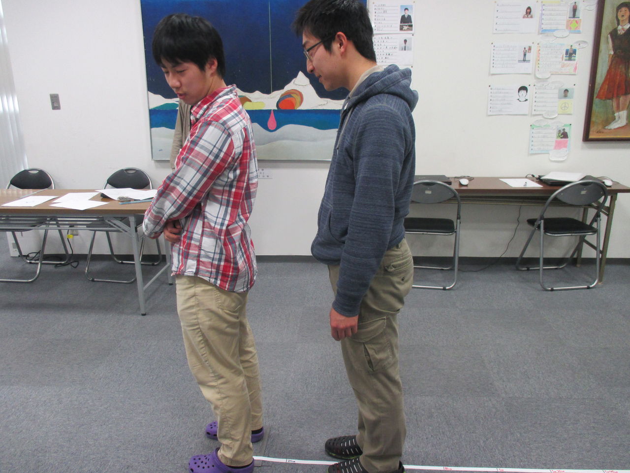 まずはパーソナルスペースについて学んでいる学生さんたち