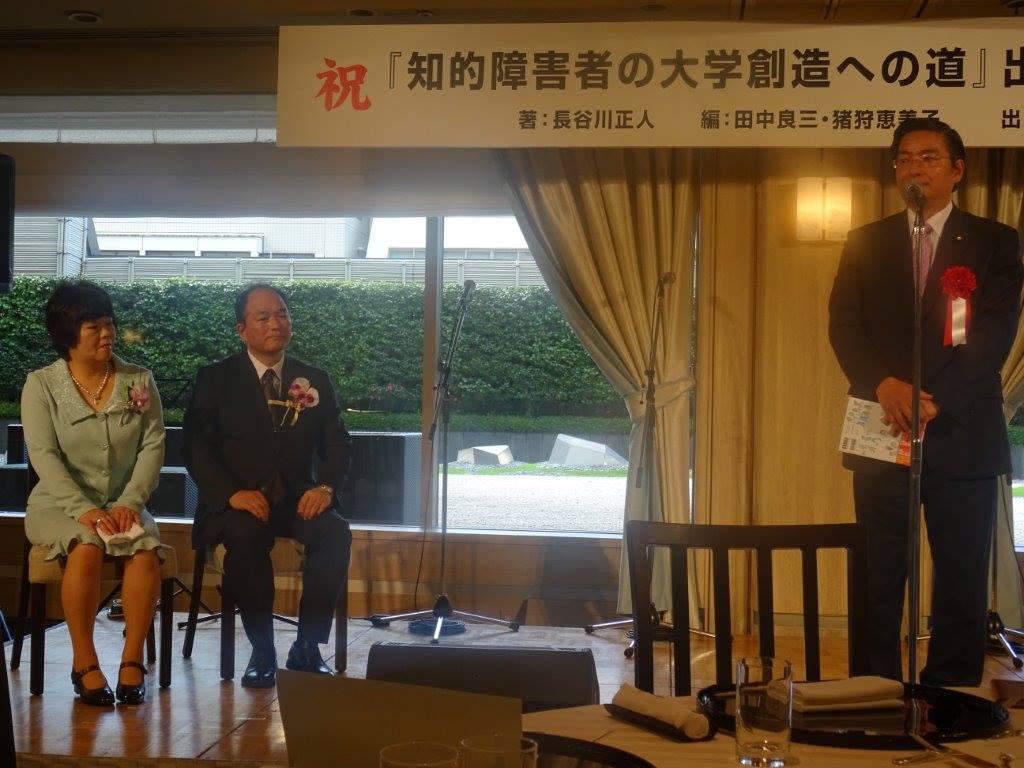 拙著『知的障害者の大学創造への道』の出版記念パーティのご臨席のためにわざわざ福岡まで駆けつけてくださいました。