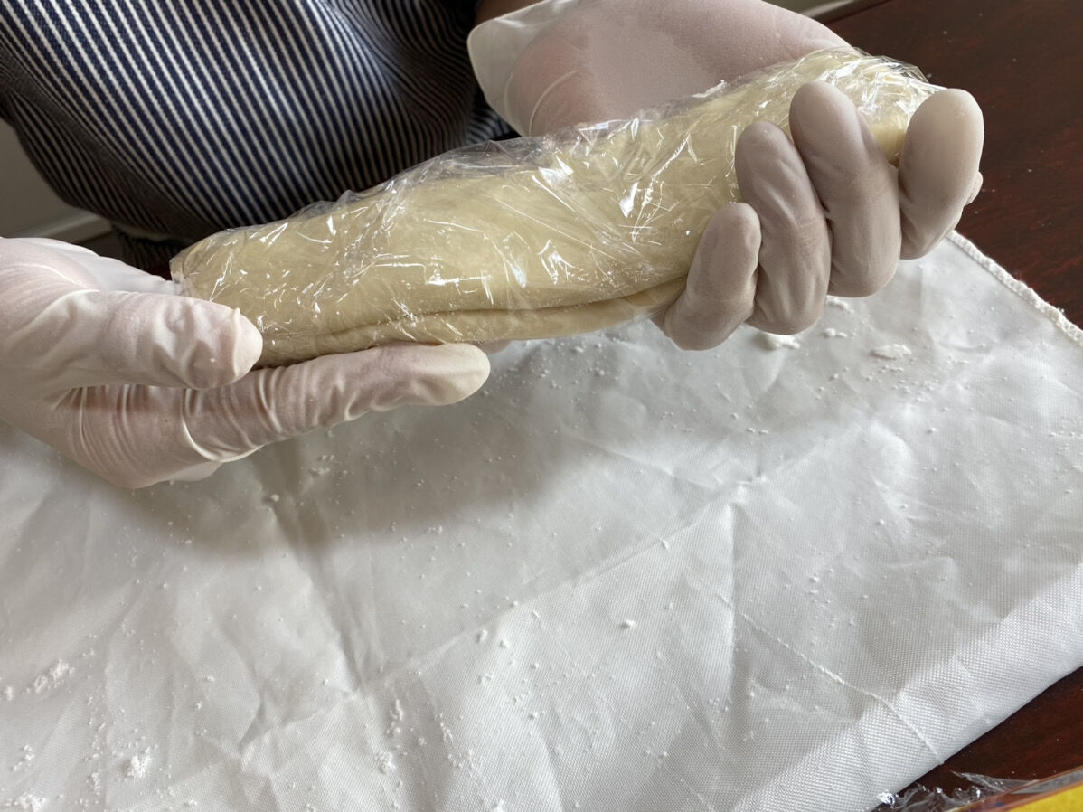 まずはパイ生地が均一になるようにしっかりのばし、