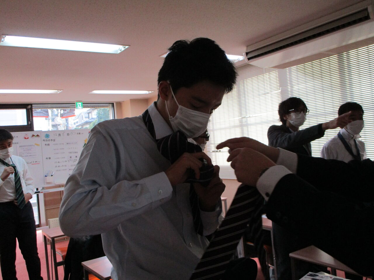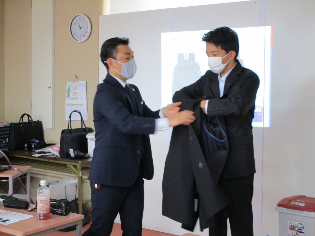この日は、朝スーツで通学された方もいて、朝からちょっとしたスーツのお披露目がありました
