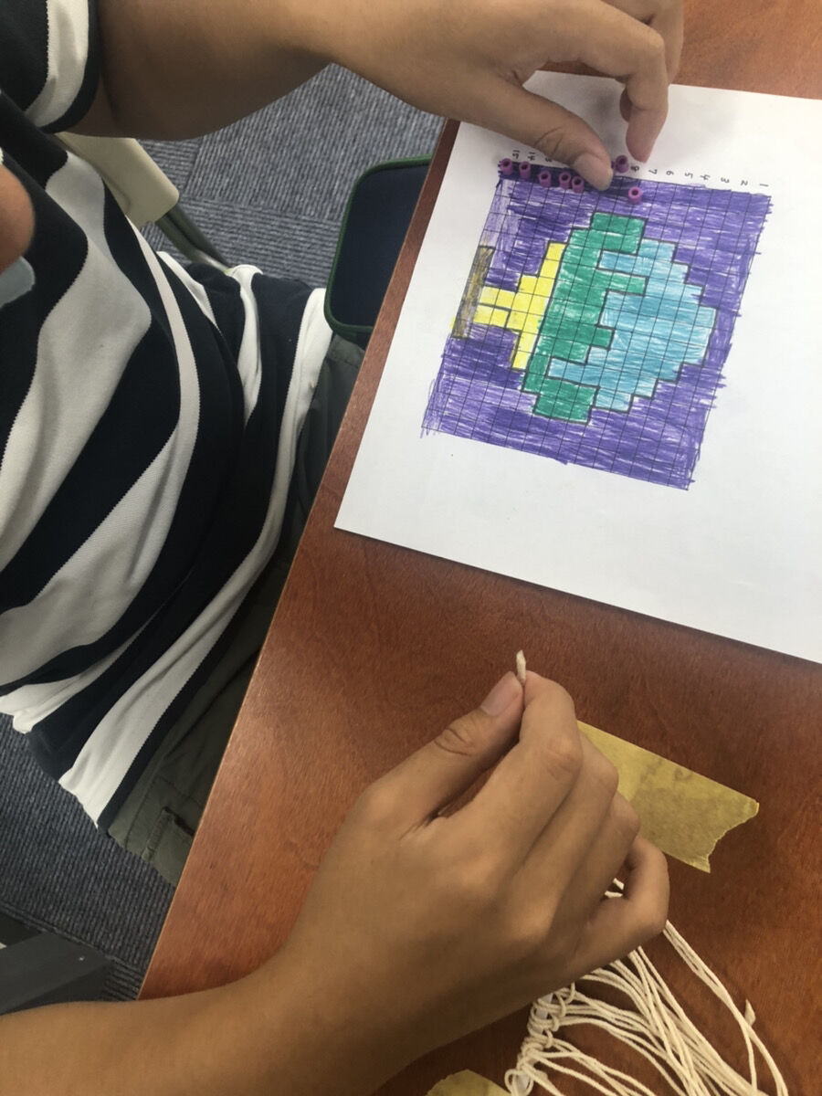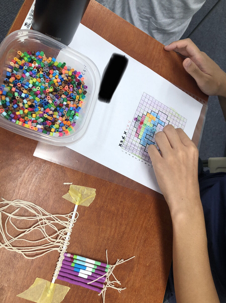 ビーズの数を間違えないように、設計図の上に1つずつビーズを置いていきます。
