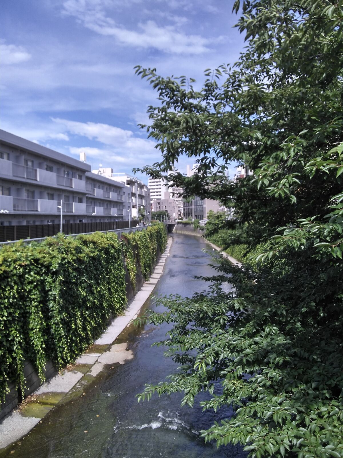 高田馬場キャンパスの裏を流れる神田川は水面に太陽の光をキラキラと輝かせながら穏やかに流れ