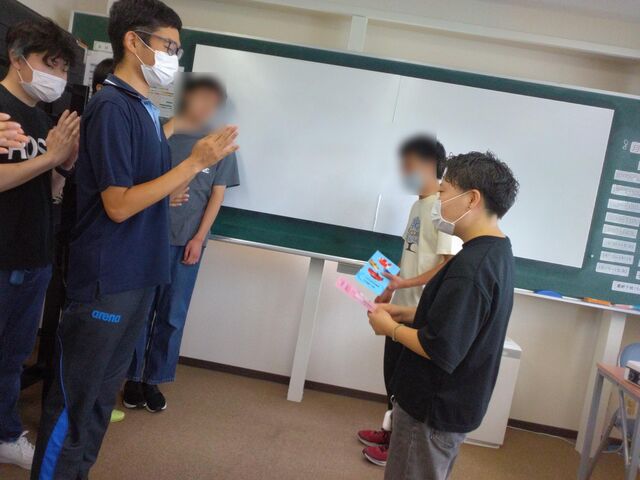 卒業はさみしいですがみんなで「頑張って!応援してるよ!」の気持ちを込め、送り出しを行っています。自立の皆さんも一緒にお祝いすることで、就労に向けた意識つくりも行っています。